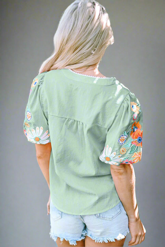 The Floral Whisper Embroidered Puff Sleeve Blouse