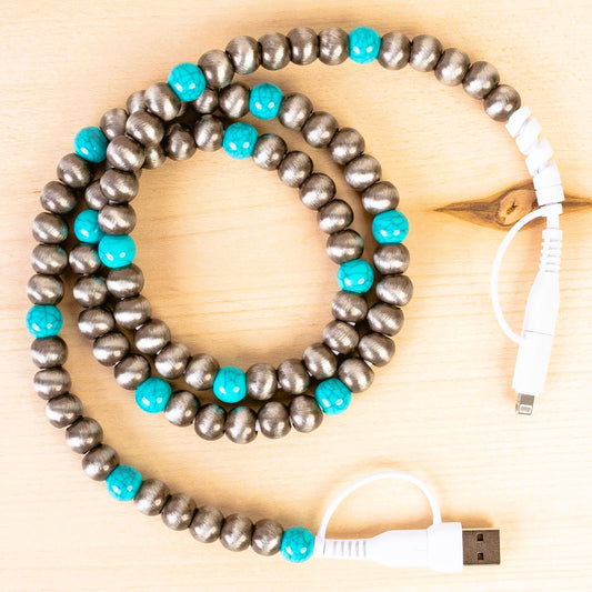 4-in-1 Beaded Charging Cable -Turquoise and Silver